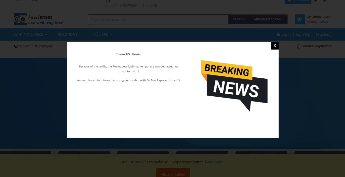 Browsing Reddit threads from Redditors going through a similar predicament and I came across Inter lenses (their site here.) Based in Lisboa, Portugal, Inter lenses are a contact lens seller that, as of this blog post, proudly boasts you can order contacts without a prescription!